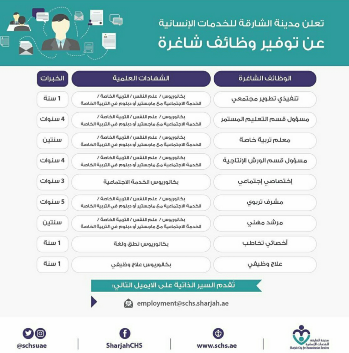 وظائف مدينة الشارقة للخدمات الإنسانية وظائف شاغرة فى الامارات